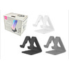 4.0(1件の口コミ) - ダイソーで購入したスマホスタンド。箱に入った状態で販売されています。これは卓上のスマホスタンドにできそうだなと思いえらびました。家にはこれよりもかさばらないタイプの折りたたみ式もありますがこの製品の利点はケーブルを挿した状態で使えること。構造的にスマホとテーブルの間に隙間ができるのでケーブルを挿したままセットすることができます。そのため、パソコンとスマホを接続してデータの移行作業をするときに便利でした。 それ以外だと動画を見るときや時計代わりとして使いたいときもちょうどよい角度だったので動画を視聴しつつ作業するのにも役立ちました。色味も黒・グレー・ホワイトで悪目立ちせず、パソコン周辺機器と一緒に置いておいても馴染みます。調整機能や折りたたみなどの機能性はないですがシンプルな構造なので丈夫だし、最近の大きなスマホでも安定して置けるのはいいですね。ものとして優秀だなと感じたし長く使えそうなので満足。しばらく使おうと思います。