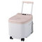 定価は4万円くらいするみたいですね。いつも行くジムにこの商品があるので、何度か使用した事があります。ふくらはぎ部分までしっかりと足を温める事ができるので、普通の足湯タイプの機械よりも、しっかりと足を温める事ができました。中に足台が入っているので、自然な状態で足を浸ける事ができ、温度も最適温度に保温できて、いつでも温かい状態で利用する事ができました。キャスターも付いているので、持ち運びや、お手入れも簡単だと言っていました。