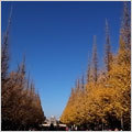 JR千駄ヶ谷駅から降りての散歩コースの1つにいちょう並木があります。青国立競技場・野球場と歩いていると目の前に道路の両側に高くそびえるいちょうの木がある。夏場もいいが、やはり秋が最高の景色をかもち出してくれる。一度は見てみたい景色の1つです。