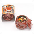 お弁当で人気の明石駅の踊りだこめし。淡路屋には有名なひっぱりだこ飯があるが、値段は少し高くなり、こちらはタコ尽くしのおかずも種類が若干豊富だった記憶がある。容器のタコ壷はくにゃくにゃと体を屈めて踊るタコの形。蓋つきで、食べ終わった後の容器は梅干しや塩など調味料入れに出来る様、識別シールが付属している。