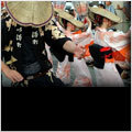 富山県富山市八尾町で毎年9月1日から3日にかけて行なわれている富山県を代表する祭りです。越中おわら節の哀切感に満ちた旋律にのって、坂が多い町の道筋で無言の踊り手たちが洗練された踊りを披露します。艶やかで優雅な女踊り、勇壮な男踊り、哀調のある音色を奏でる胡弓の調べなどが来訪者を魅了します。