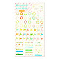 手帳にシールを貼るとポップな感じになって、とってもかわいいです。透明感があるシールで、シールの上からペンで書き込める所が便利です!楽しく簡単に自分流にデコれるし、いろんなシールの種類があるので、選べます!