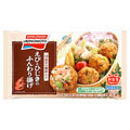 丸いので、浅いお弁当箱には不向きかな。コロっとした形で、ヘルシーな印象です。ネーミングにあるように、えびとひじきが使われていて、お豆腐や枝豆やも入っていてバランス良いかと。ふんわりしたがんもみないな感じかな~自然解凍OKなのは、ありがたいです。