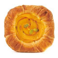 ディニッシュ系のパンが好きなので、食べてみました。おやつ感覚で食べることができる甘めのパンで、外側のデニッシュが軽い食感で真ん中は、かぼちゃプリンのかぼちゃの甘さとプリンの食感がマッチしています