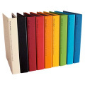 4つ穴のA4リングファイルで背幅がちょうど良い物を探していて、これを見つけました。用途別に色違いにしたので、あえてラベルなどは貼らずに使用しています。色合いがポップすぎるかなと最初は思いましたが、色違いで並べてみると意外と良い雰囲気でした。素材も丈夫そうだし収納力も十分あって、思い通りのサイズでした。